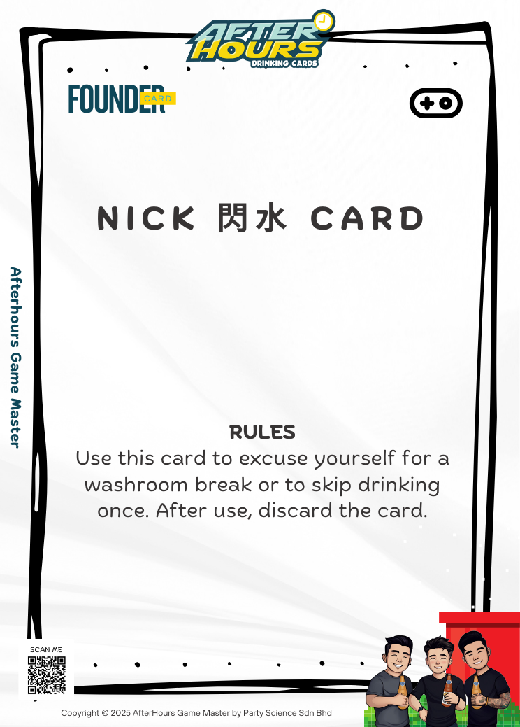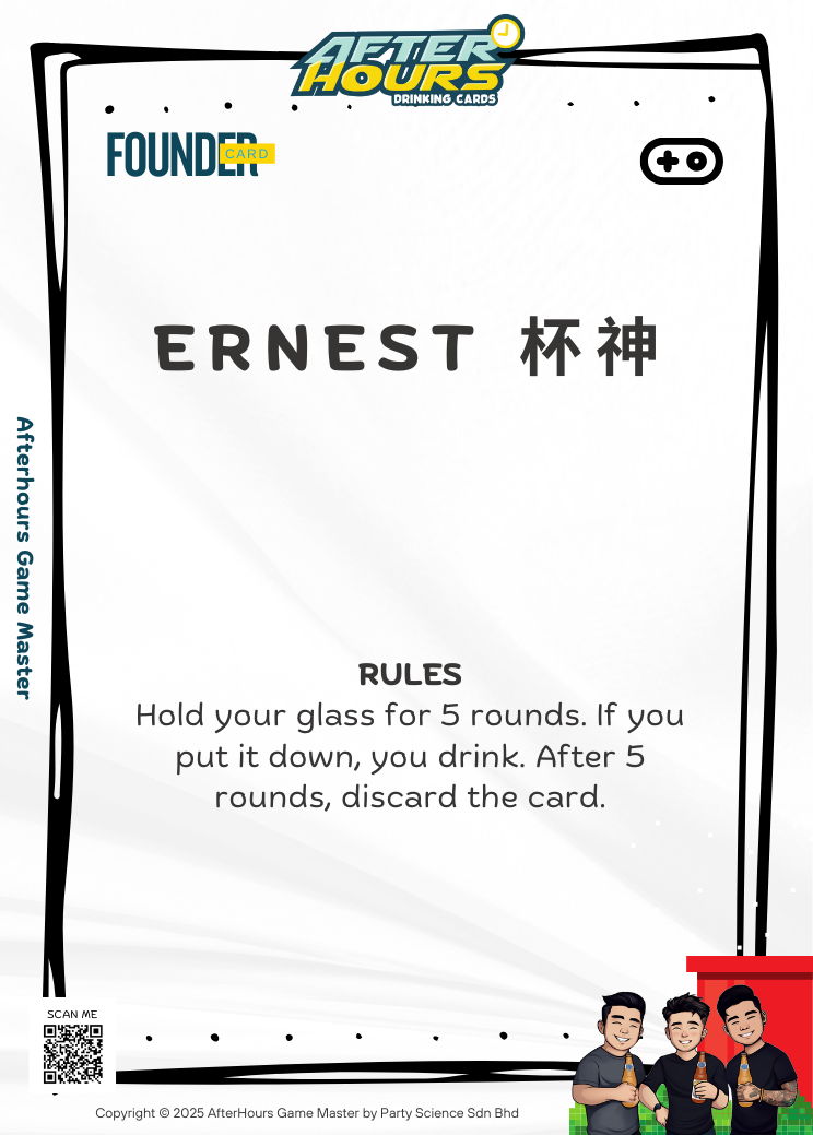 You've just unlocked the ultimate party experience inspired by the iconic Afterhours Show—hosted by Nick, Ernest, and William. Whether you're pre-drinking, mid-party, or deep into the chaos, these cards are designed to turn any night into unforgettable memories (or regrets... depends how hard you play 😏).