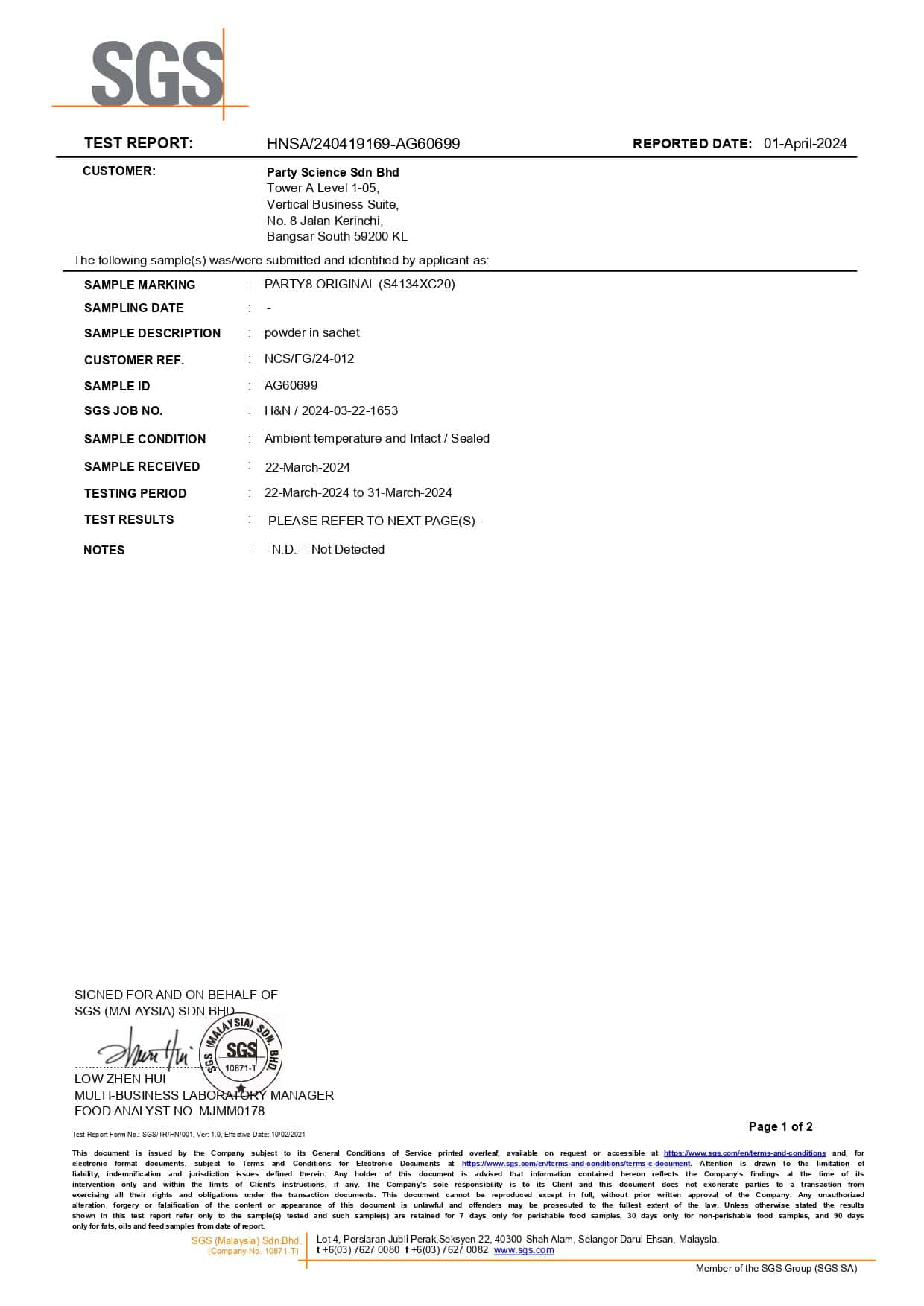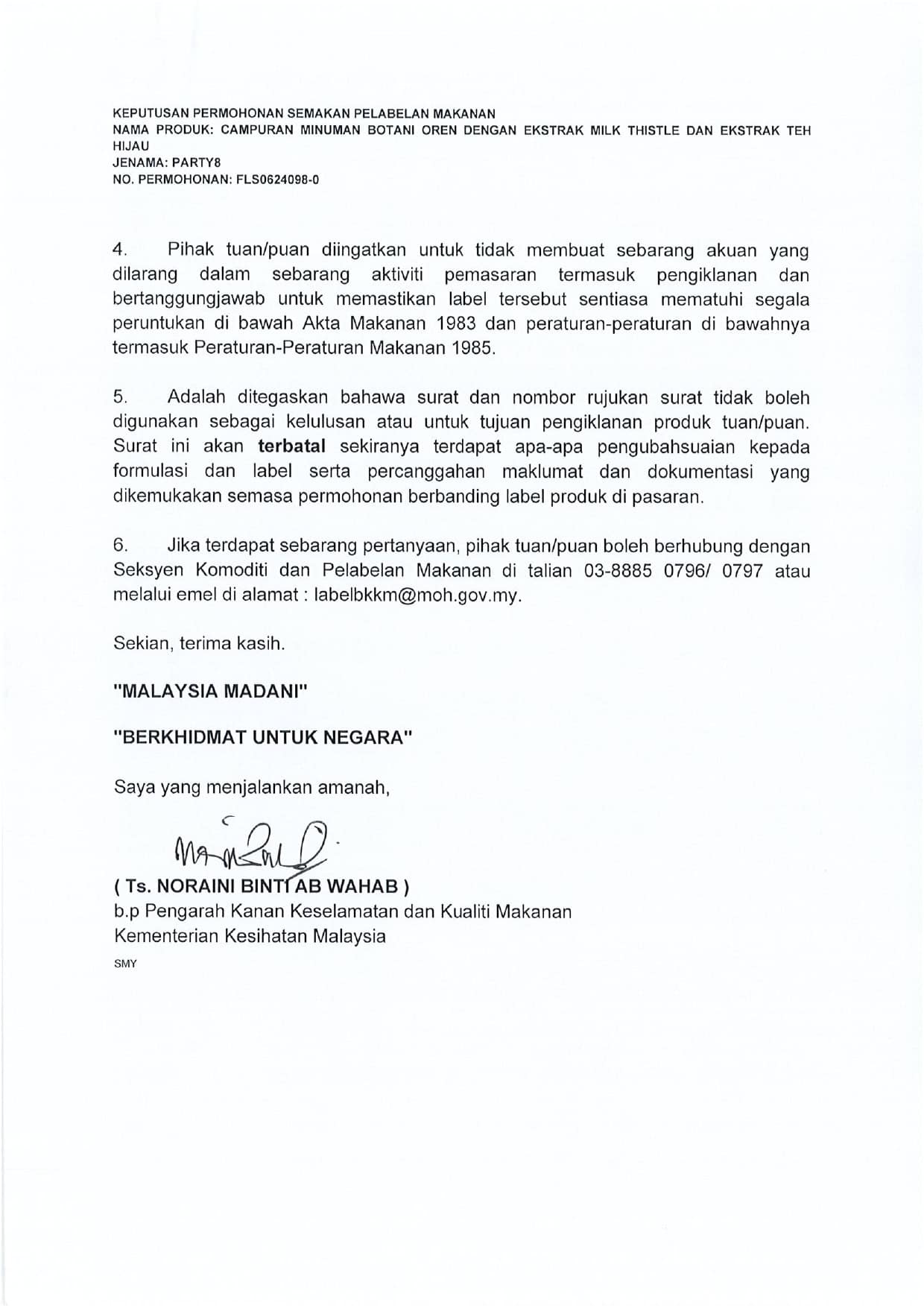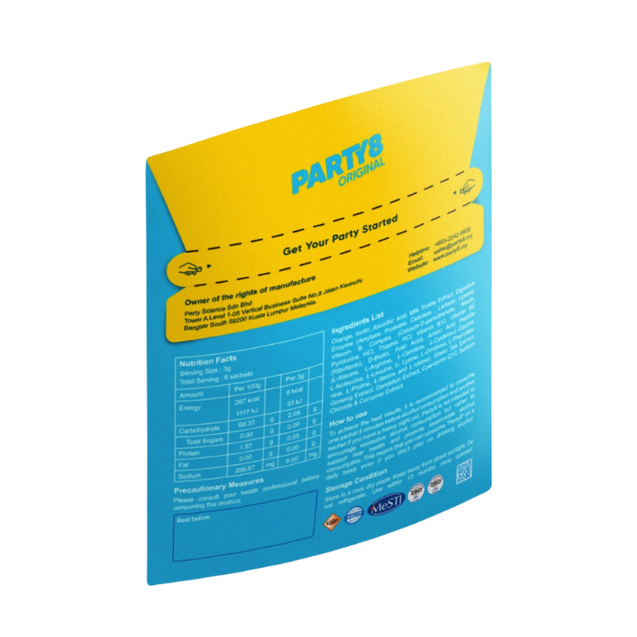| จำนวนหน่วยบริโภคทั้งหมด: 6 ซอง | ||||
